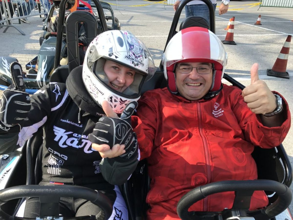 Vo štvrtok a piatok doobeda najazdili naše tri motokáry viac ako 300 jázd so špeciálnymi športovcami. Stretli sme tu mnoho známych tvárí, našich fanúšikov, ktorí v rade trpezlivo čakali na podpisy celého tímu, ale i nováčikov, pre ktorých bola jazda na motokáre absolútnou novinkou. V každom prípade, vždy rýchlosť jazdy prispôsobujeme inštrukciám našich klientov, ich bezpečnosť je prioritou.